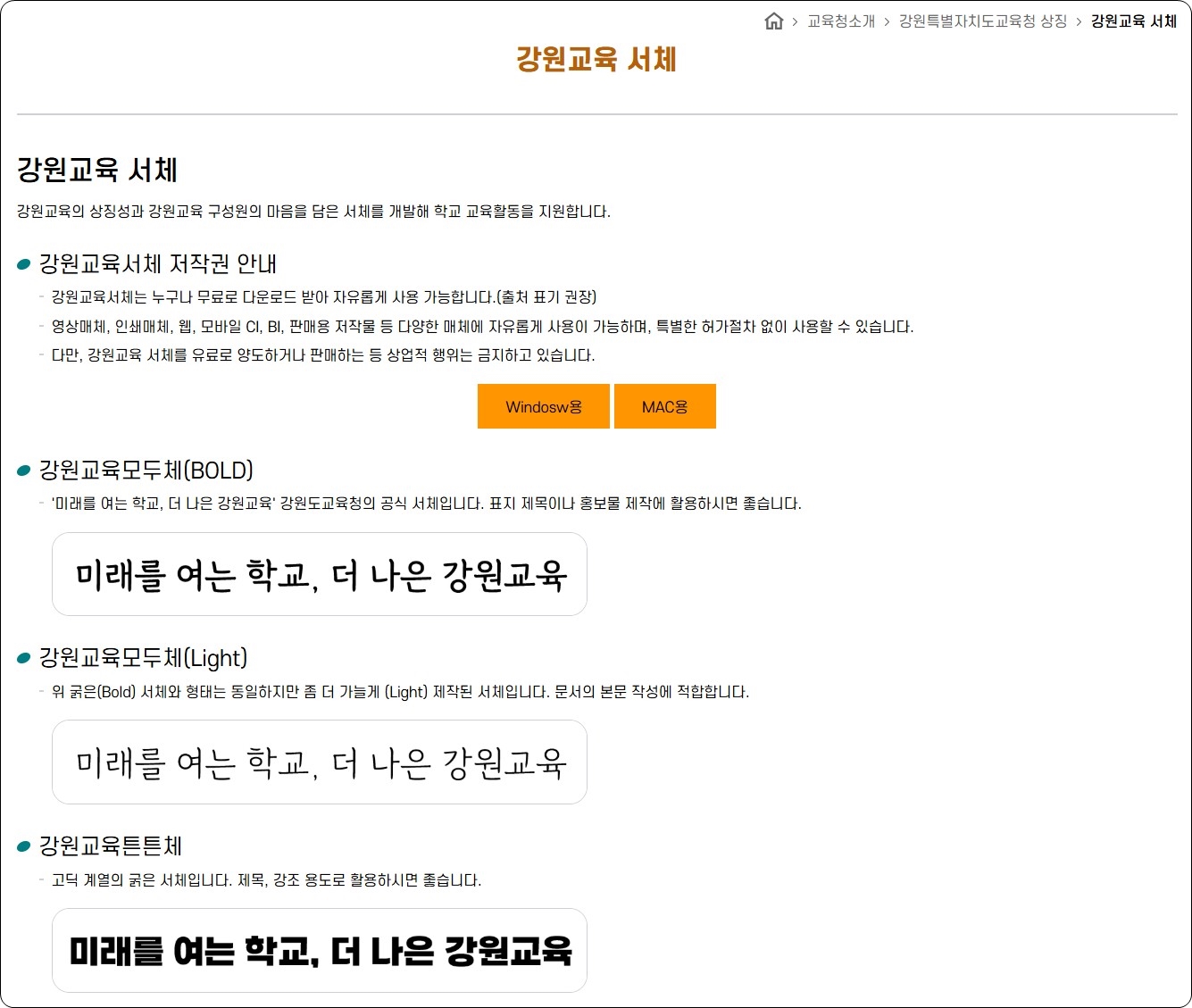 강원특별자치도교육청에서 제공하는 상업용 무료폰트 강원교육 모두체를 공유합니다.