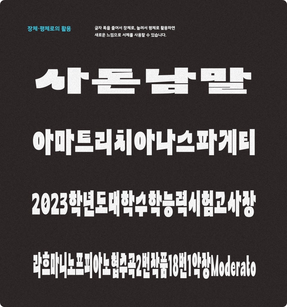 - 상업적 용도로 쓸 수 있는 무료 서체입니다.